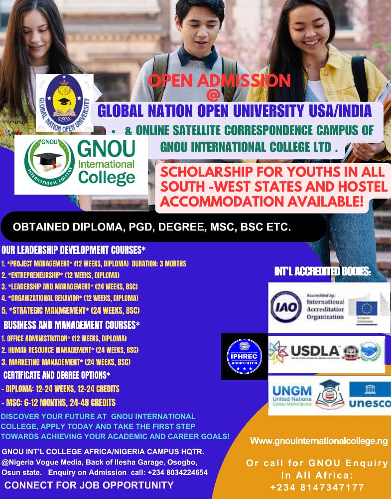 At the heights of Global Nation Open University -India USA virtual educational institution for direct #Elearning for all #Africa needed. We’re proud to launched out our GNOU international College Ltd, all Africa 🌍 Region First 🥇 unveiling, Best Accreditation online certification for #scholarshipopportunities of Tution FEES reduction.December 14, 2025